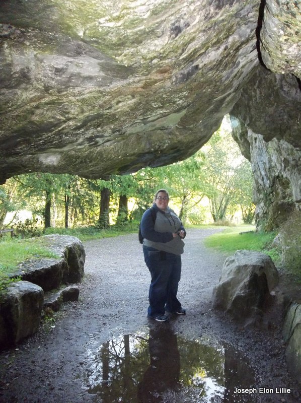 Because we could spend four or five hours at Blarney we were able to inspect the caves as well as the gardens. Here is Amanda at the entrance to the Badger’s cave, an ancient escape route out of Blarney Castle. The way is sealed though, you may not pass.