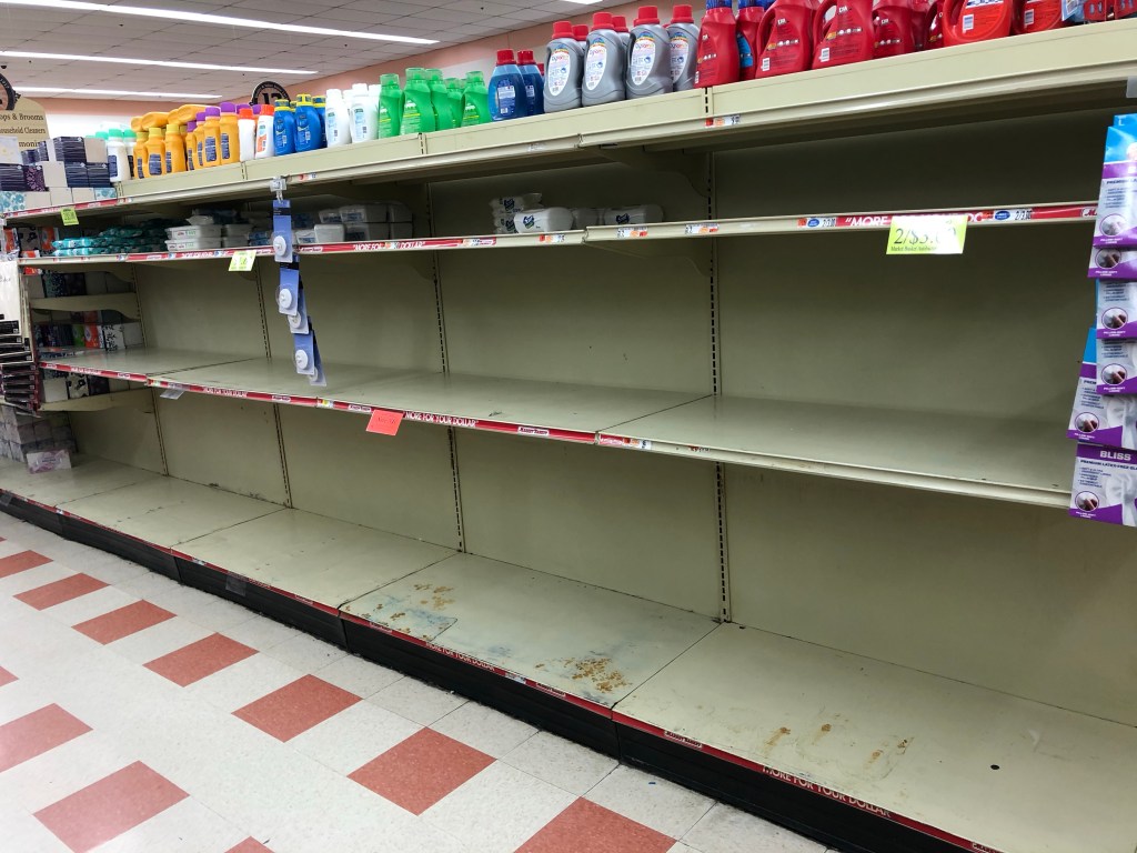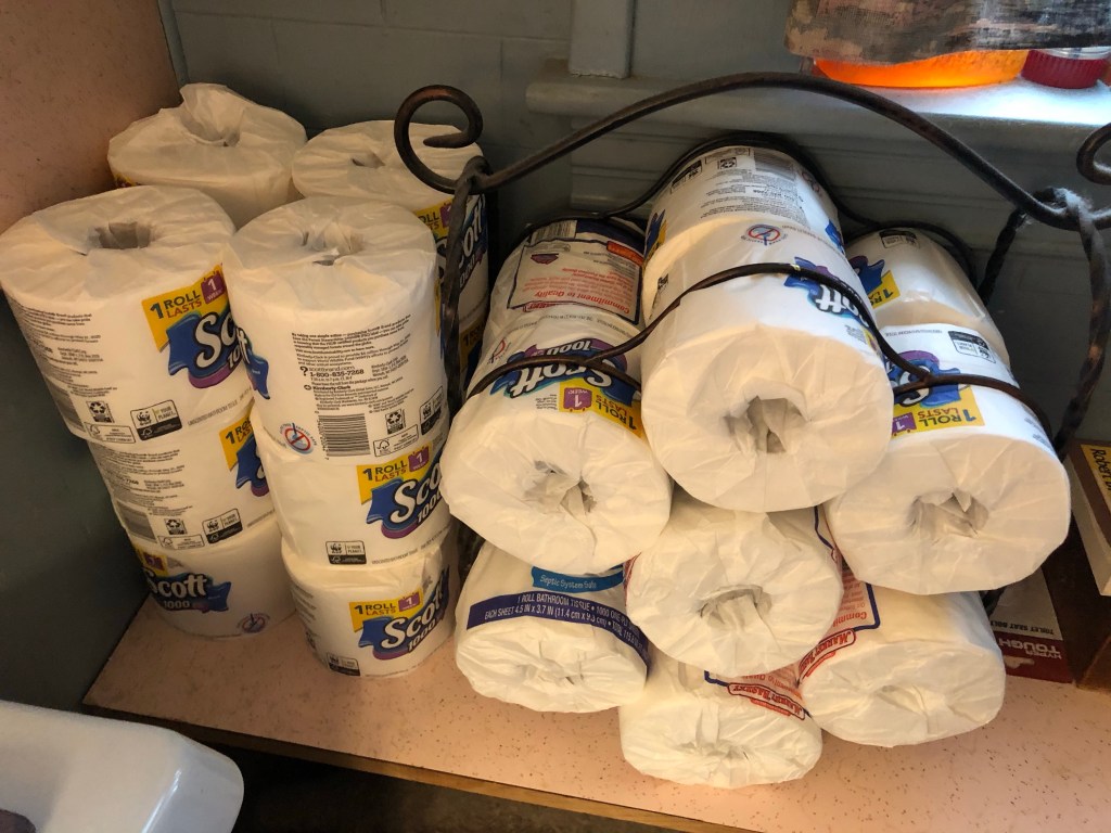 I am very glad I bought toilet paper last week. This is what the shelves looked like today at the grocery.