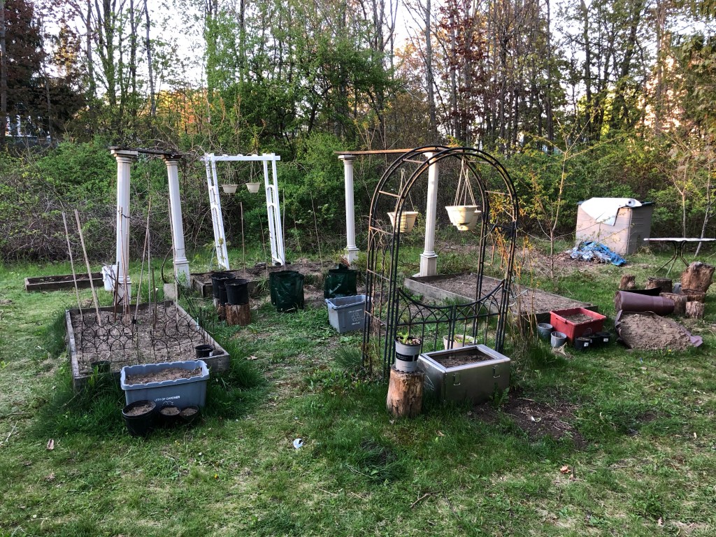 I am trying all kinds of experiments this year with soil and different kinds of pots and beds to see what I like. We will see what comes of it. I think I need to straighten my pillars.