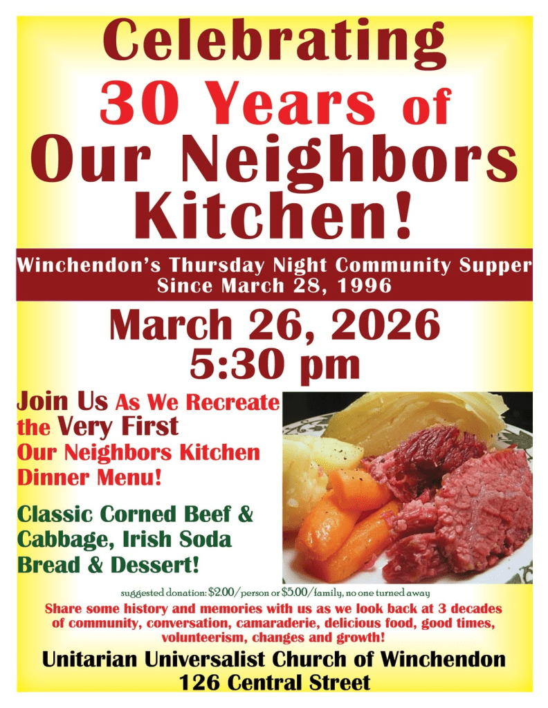 OUR NEIGHBOR’S KITCHEN, 30 YEARS Posted on March 27, 2026 by joseph elon lillie under New England OUR NEIGHBOR’S KITCHEN, 30 YEARS Share this:TweetLike Loading... Related