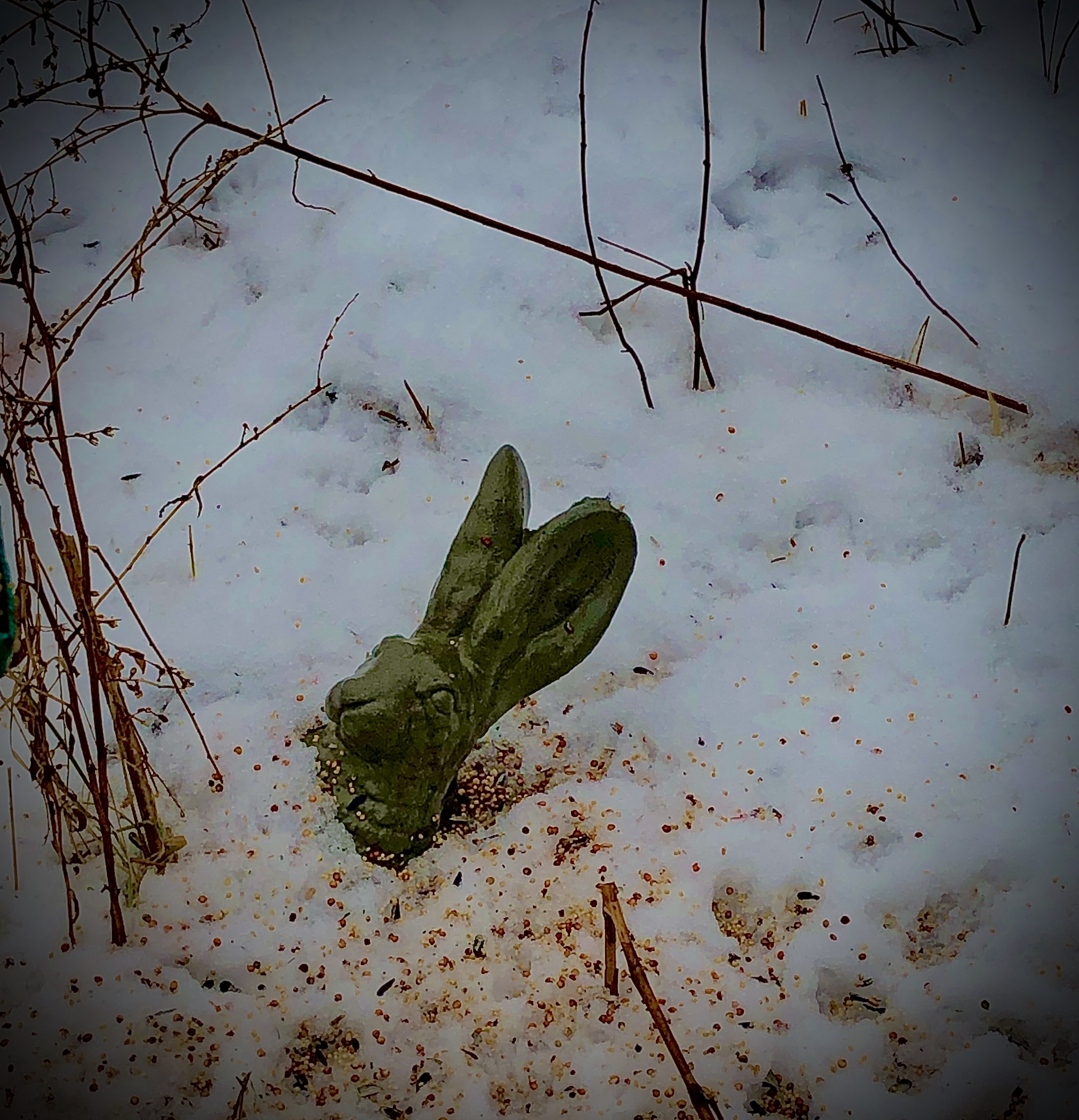 What happens when you leave helpless lawn ornaments out in a snow storm.
